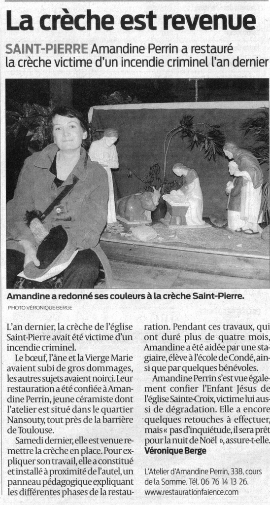 J'ai besoin de voir et manipuler l'objet pour vous établir un devis exact des restaurations à effectuer (illusionniste ou muséale)